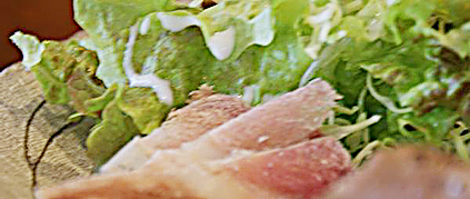 葉っぱがシェフでは、尾鷲市が水深約415メートルの海底から汲み上げている海洋深層水で塩結晶を採り、 裏山で摘んだ野草(薬草)を使って、生ハム作りの体験メニューとしています。
